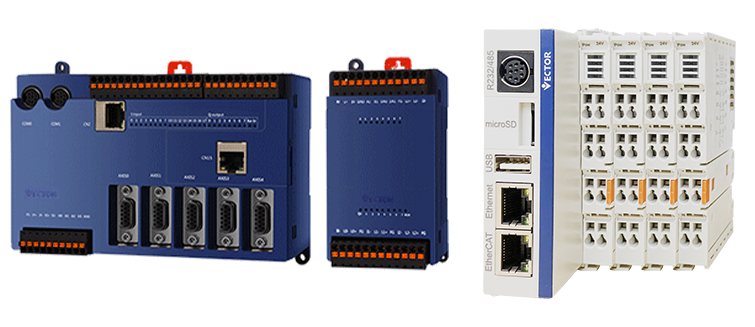 • 威科達VE系列運動控制器,搭載高性能CPU(4核1.6GHZ主頻)具有強大的運算能力,基于linux系統,采?CODESYS編程?具,?持IEC61131-3國際標準的6種編程語?的高性能運動控制器。標配EtherCAT工業以太網實時總線,可以實現最大64軸同步控制。